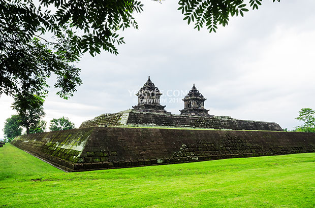 Ia dibangun menghadap ke barat, tempat di mana matahari menyudahi hari. Tak butuh waktu lama untuk mengelilingi keseluruhan bangunannya. Tapi menikmati pemandangan di sekelilingnya, tak mungkin cukup sebentar saja. Semakin sore, pemandangan di candi pun semakin indah. Matahari semakin bersahabat dan tak begitu menyengat. Suara angin yang bermain dengan dedaunan di sekitarnya begitu merdu menenangkan.Aihhh...rasanya tak mau pulang sampai matahari benar-benar menghilang.